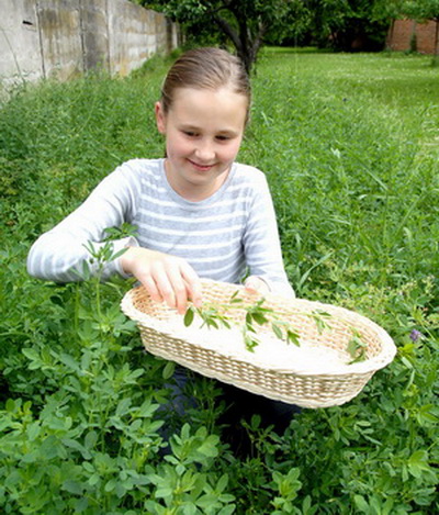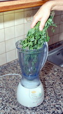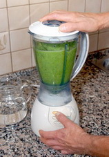A jak se zelený nápoj připravuje? Lze jej připravit z jakékoli zelené natě sebrané z čisté lokality. Hlavní podíl představuje jetel luční (Triforium pratense) nebo vojtěška lucerka. Mimo jetel můžeme dát podle chuti například kopřivu dvoudomou (Urtica dioica), list smetanky lékařské (Taraxacum officinale), list řebříčku obecného (Achillea millefolium), případně jiné známé byliny a opereme je pod tekoucí vodou. Část bylin dáme do mixéru zalijeme 0,5 až 1l strukturalizované vody a za chodu mixéru po troškách přidáváme byliny. Mixujeme asi 5 minut, třeba i po menších dávkách a nalijeme do PET láhve. Uzavřené v láhvi necháme alespoň hodinu louhovat v ledničce, několikrát průběžně protřepeme, pak scedíme přes plátno a nápoj je připraven k podávání. Zelený zázrak rozhodně nesladíme, nepřidáváme ani med nebo citron. Můžeme jej uchovat zásadně ve tmě, v uzavřené lahvi a v ledničce maximálně do druhého dne. Osobně doporučuji spotřebovat co nejdříve, protože kvalita okysličováním pochopitelně poměrně rychle klesá. Musí mít jasně zelenou travní barvu a pokud se barva oxidací změní na olivovou již jej nekonzumujeme. Poté je vhodný třeba na omývání některých vnějších neduhů nebo do koupele Byliny můžeme sbírat většinou, až do konce listopadu. Chuť zeleného nápoje můžeme upravovat vzájemným poměrem bylin. Jetel a kostival je sladký, kopřiva a kontryhel neutrální, řebříček trochu hořkokyselý, pampeliška hořká, šťovík kyselý. Pokud již jste tak zmlsaní, že ani tento široký výběr možných kombinací chutí nevyhovuje Vašim představám, tak přilijte čerstvě vylisovanou ananasovou šťávu a pak to určitě pitné bude. Dobu přípravy zeleného nápoje včetně sběru bylin odhaduji tak na půl hodiny.